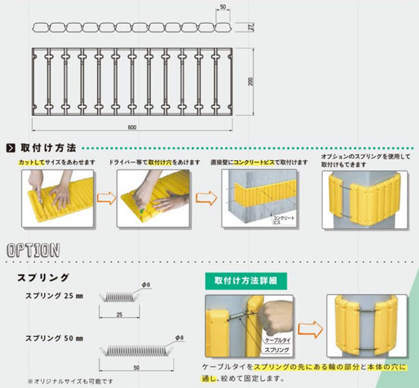 ガードプロテクター・イエロー(ケーブルタイ4本・スプリングバネ長さ50mm×4本付属)(安全用品・安全保安用品・ガードプロテクター)